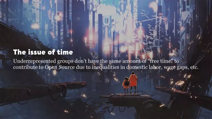 今天,我开始明白,不平等使得代表性不足的群体很难有“空闲时间”为开源做出贡献。