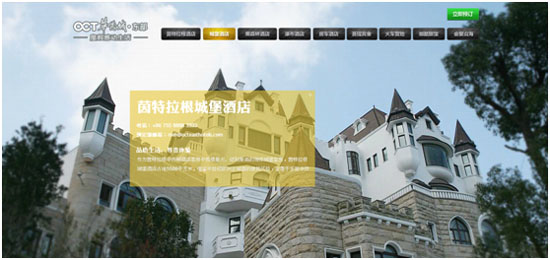 直切主题,点开网站映入眼帘的是气势辉恢宏东部酒店群,乐享旅程从酒店开始,下拉菜单区块分为酒店类型、立体轮播、酒店特色简单介绍、地图及联系方式。