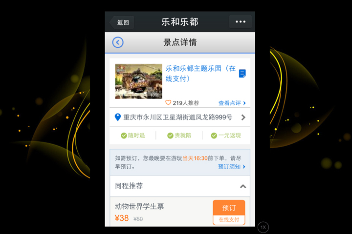 电商预定开发:主题公园度假景区重庆乐和乐都移动开发