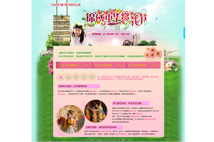 1、活动专题页面设计主题鲜明,色彩明艳而富有感染力;动态蝴蝶犹如点睛之笔,诗情画意中,仿佛可以闻到花香。