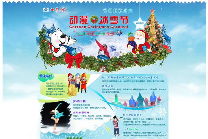 唐宋中国抓住动漫和冰雪节的青春、动感、时尚、快乐的活动特性,凸显飘雪、奇幻、锐舞等时尚新潮元素巧妙的融入到创意中去,为访问者精心营造浓郁的冰雪狂欢圣诞氛围。