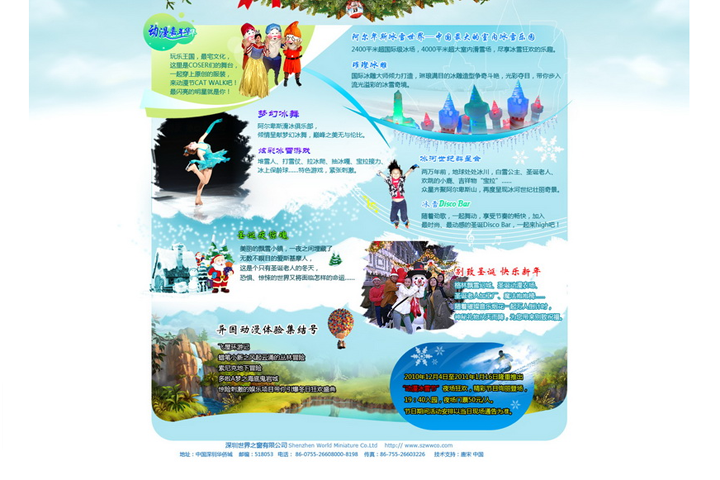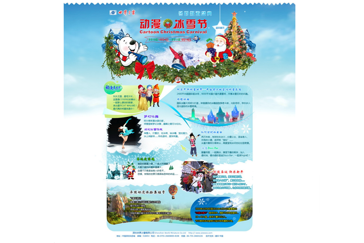 世界之窗冰雪节是深圳冬季传统旅游品牌活动,此次别出心裁地与动漫相结合,向游客首推动漫冰雪节,加入了众多动漫元素,活动跨越圣诞、元旦两大节日,打造一个顶级的冰雪盛会。