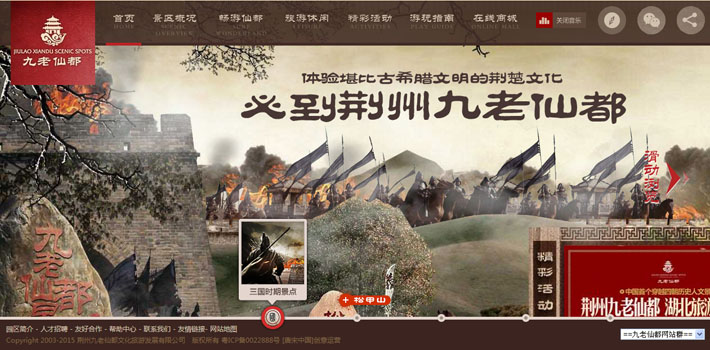 项目是以四个时期(三国时期、南北朝时期、元朝时期、明朝时期)加大型表演(梦回三国)五大板块为核心,给人与历史价值、穿越、梦幻般的各时代冲击感,首页突出核心景区形象,设计采用多屏轮播效果来诠释荆楚文化古都;