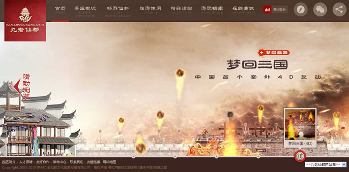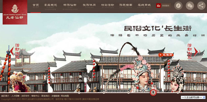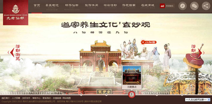 九老仙都景区作为一个刚新建的景区,迫切需要一个非常好的品牌形象,在项目启动之前唐宋中国与客户进行了深入沟通,了解透彻景区的特色、品牌需求、市场定位、针对人群。在新时代的品牌塑造中通过五大板块画面呈现景区独特魅力,更好的突出了九老仙都景区的独有特色,每幅画面加入部分动态元素,让大家感受不同时期的历史文明,更加产生到访欲望。不仅设计和图片丰富游客的眼球,而且各级菜单及侧面菜单灵活好用。