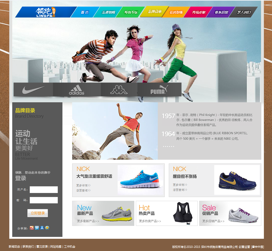 深圳市领跑体育用品有限公司作为华南地区最大的世界顶级运动品牌专业零售连锁企业,是adidas、NIKE等世界著名体育用品品牌在中国大陆最重要的战略合作伙伴之一。随着企业的持续发展及营业区域的飞速扩张,作为品牌形象代表的企业网站,已经越来越不能适应公司发展的需求。为此,深圳领跑委托唐宋中国进行官方网站的改版工作。