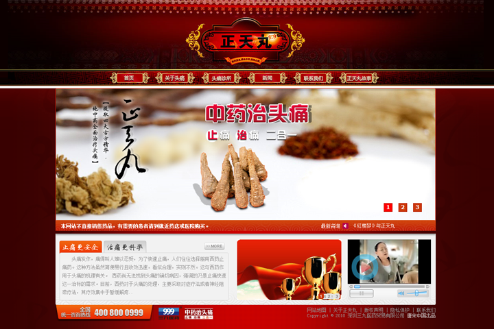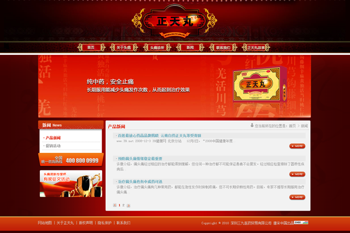 网站设计开发:三九正天丸药品中药产品营销网站设计