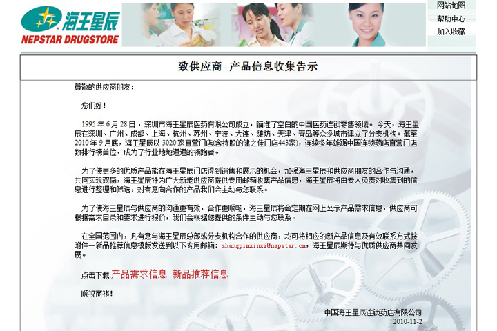 海王星辰,一个随着 20 世纪 90 年代中国医药零售业兴起而诞生的名字。从 1996 年的第一家社区零售药店开始,海王星辰从无到有,从零星闪烁到星罗棋布,实现了从1家到1600多家健康连锁药房的嬗变。中国最具活力的城市深圳,是海王星辰的发源地。 20 世纪 90 年代中期, “ 连锁 ” 的概念注入中国的商业零售领域。1995 年 6 月 28 日 ,深圳市海王星辰医药有限公司成立,瞄准了空白的中国医药连锁零售领域。