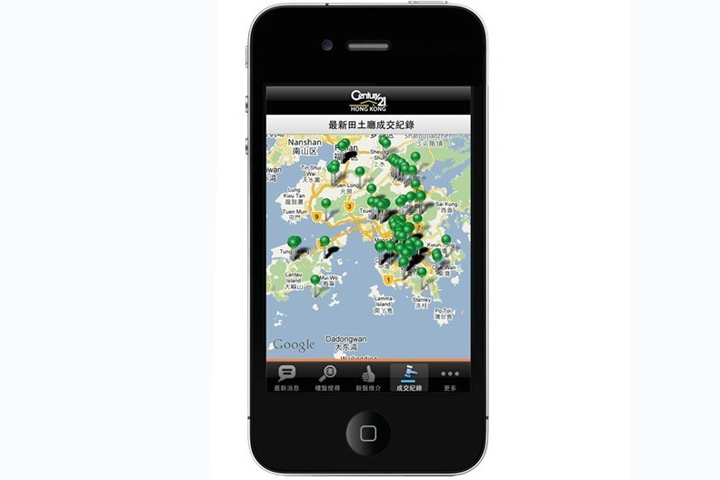 所搜寻的楼盘信息在谷歌地图上可显示分行的位置