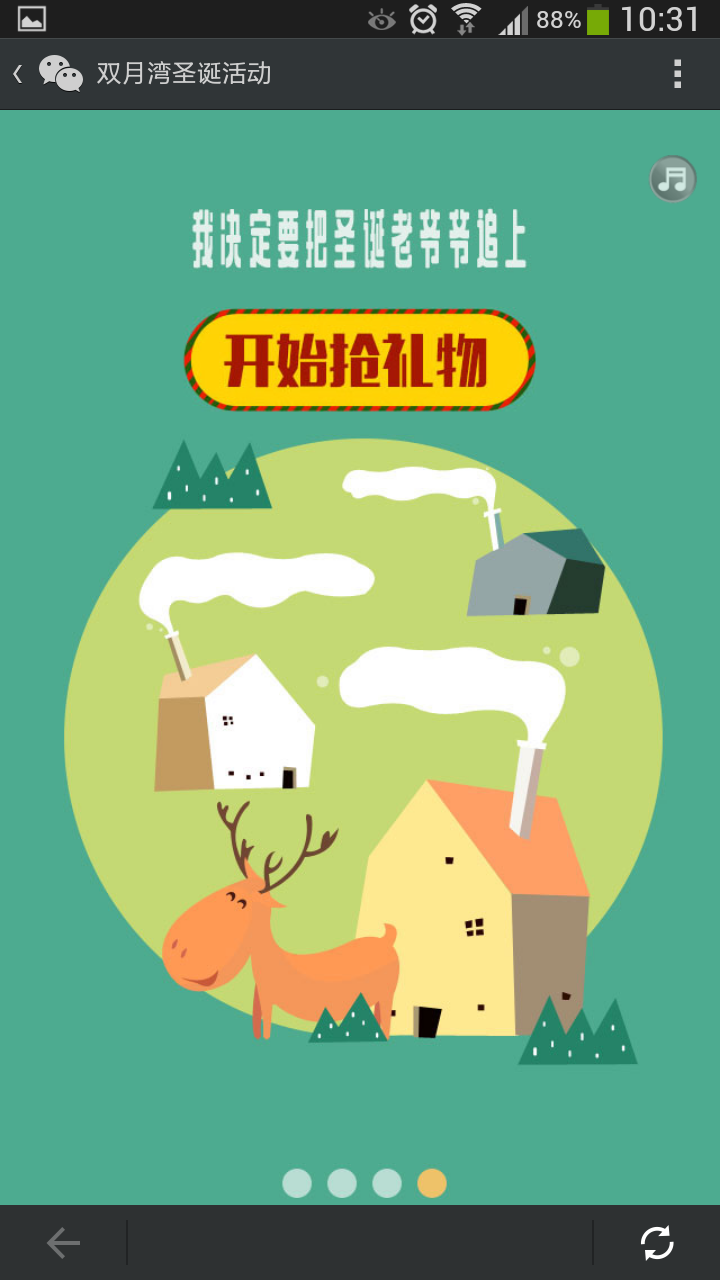 首先,以当季节庆圣诞主题来渲染主题氛围,让用户进来浏览一目了然,并在首页展示项目信息以及活动标题。