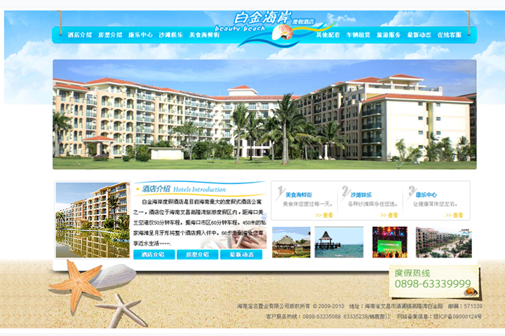 利用蓝天海景背景衬托酒店景观,以及falsh效果生动的展示给用户浏览。